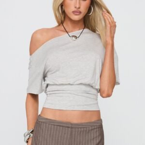 Off-shoulder drapey top Raw neckline. soft ruched detail. fitted waist. cap sleeves Good stretch. partially lined Princess Polly Lower Impact