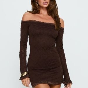 Avenues Long Sleeve Lace Mini Dress Chocolate