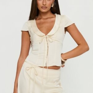 Aubrette Satin Collar Top Cream